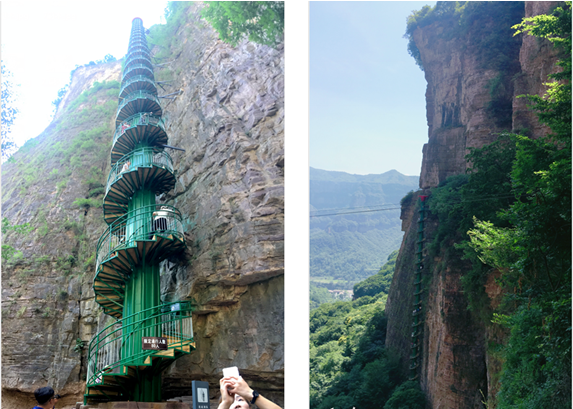 王相岩的特色是悬崖栈道和88米高的摩天筒梯!世上无难事,只要肯登攀!大家跃跃欲试,都要挑战一下。以马总、晁总为首的第一小分队,一路领先,不畏艰险,披荆斩棘,率先到达终点!有了带头人,大家一股作气、克服困难,战胜自我;途中小伙伴们互相打气,互相鼓励;一路互相搀扶,一起登高望远,在山顶享受‘一览众山小’的美景,体验“无限风光在险峰”的豪情!。